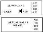 A ‘konfigurációs menüben’ megnyomva a ‘Kilépés’ gombot, a központ visszatér az alapkijelzéshez, de először jóváhagyást kér a kezelőtől (programozótól). Az ‘Enter’ gombbal jóváhagyhatjuk a ‘konfigurálás’ során elvégzett módosításokat. Az adatok mentése során a kijelzőn a jobb oldali mező felirata olvasható.