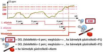 13. ábra: A CO érzékelők jelzési szintjeinek és a beavatkozásoknak a beprogramozása